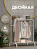 Достоинства: Вешалка легко собирается, поместилось очень много вещей, на более высокой перекладине можно вешать платья или штаны, все поместится в высоту.