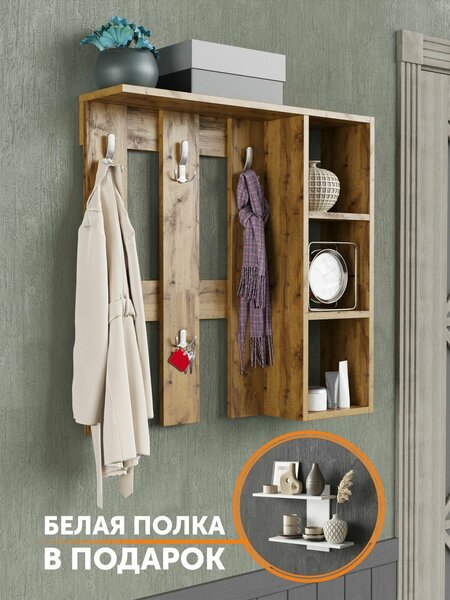Вешалка настенная с полками в прихожую для одежды деревянная вотан