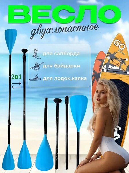 Весло двухлопастное для sup-доски / Весло синее двустороннее для SUP boardПлюсы двухлопастного весла для SUP-доски Эффективность движения Двухлопастное весло обеспечивает более высокую эффективность движения по сравнению с однолопастным. Две лопасти создают больший толчок, что позволяет paddler-у двигаться быстрее и с меньшими усилиями. Управляемость Другое важное преимущество двухлопастного весла — это простота управления. Когда вы используете его, вы можете более эффективно маневрировать на воде. Как на спокойной глади, так и в условиях легкой волны, ваш контроль над доской значительно улучшится. Вы сможете легко изменять направление и скорость своего движения. Долговечность и надежность Плюсы двухлопастного весла для SUP-доскиОдно весло-два варианта использования. Двухлопастное весло обеспечивает более высокую эффективность движения по сравнению с однолопастным. Две лопасти создают больший толчок, что позволяет paddler-у двигаться быстрее и с меньшими усилиями. Благодаря уникальной конструкции одно весло можно использовать в двух вариациях. Многофункциональность! Трехсекционное весло подходит не только для SUP-досок, но и для различных водных активностей. Вы можете использовать его для каякинга, байдарок и даже для лодок. Это делает его идеальным выбором для любителей активного отдыха, которые любят пробовать что-то новое. Если вы решили провести день на водоемах с друзьями на каяке, простая замена оборудования с помощью этого весла — просто мечта. Материал веслаВесло с алюминиевым сплавом и нейлоновыми лопастями сочетает в себе прочность и легкость. Алюминиевый сплав обеспечивает надежность и долговечность, а нейлоновая лопасть обеспечивает хорошую гидродинамику и устойчивость к повреждениям. Такие весла часто используются в kayaking и гребле на каноэ, так как они позволяют легко маневрировать и эффективно использовать усилие гребца. Одно весло-два варианта использованияВесло для SUP (сап-доски) представляет собой надежный и функциональный аксессуар, который обеспечивает комфорт и удобство во время плавания. Его жесткий пластиковый регулируемый замок позволяет легко и быстро разбирать весло и настраивать его высоту в зависимости от роста пользователя. Основные характеристики: Удобная регулировка: Возможность подстраивать длину весла под рост пользователя делает его универсальным для разных людей. Эргономичный дизайн: Весло спроектировано с учетом удобства, что позволяет снижать усталость рук во время длительных прогулок. Легкость сборки и разборки: Интуитивно понятная конструкция позволяет быстро подготовить весло к использованию. “Т” образная рукоятка: Удобная форма рукоятки обеспечивает надежный хват и комфорт во время гребли. Защелка пружинного замка: Разработанная для легкой смены высоты, она обеспечивает надежность и безопасность в эксплуатации. Такое весло станет отличным дополнением к вашей сап-доске, обеспечивая не только комфорт, но и эффективность во время активного отдыха на воде. Размеры веслаВы с легкостью можете собрать и разобрать весло, благодаря своей конструкции и малому весу всего 800/1030 грамм весло очень компактно и занимает мало место в сумке. Весло так же подходит для занятий на байдарке, каяке, лодке, сабе. Длина с одной лопастью 160-210смДлина с двумя лопастями 200-225см Показать полностью Ко