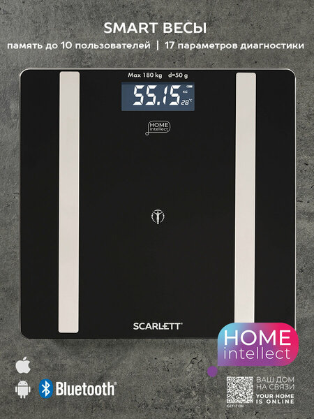 Достоинства:Красивый дизайн. Большие, яркие цифры на табло. Высокая точность измерения. Много измеряемых параметров. Батарейки идут в комплекте. Недостатки:Пока не обнаружил. Для более точных измерений требуется установка весов на твёрдую поверхность, даже на линолеуме появляется погрешность, порой до 2-3 кг, не говоря уже о мягких основаниях (ковёр и т.п. вещи). Комментарий:Для пользования всеми функциями нужно сопрягать с телефоном. Нужно установить приложение Home Intellect (доступно в GooglePlay) на телефон или планшет. Перед запуском приложения нужно включить bluetooth и геолокацию на телефоне. Запустить. В приложении нужно добавить устройство, выбрать из списка весы (Весы напольные Scarlett). Вылезет запрос на местоположение, согласиться. Создать пользователя (можно создать несколько профилей). Указать пол, рост и возраст (нужны для расчёта ИМТ и не только). После всех манипуляций встать на весы без носок. Телефон должен установить связь с весами. Если всё сделали правильно, то вес, указанный на весах должен появиться и на телефоне (если не появляется можно попробовать закрыть и открыть приложение заново). По итогу в телефоне появится вся необходимая информация. Она сохраняется и можно отследить динамику. Также приложение даёт рекомендации по улучшению показателей. Кнопка снизу, рядом с отсеком для батареек нужна лишь для изменения меры.