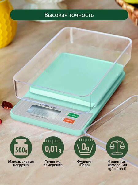 Высокоточные весы кухонные электронные MARTA с чашей для специй. Максимальный вес 500 гр. Точность измерения 0,01 гр. Кухонные весы с 2 поддонами. Функция тара и жидкокристаллический дисплеем с подсветкой. Обеспечивают надежное взвешивание продуктов массой до 0,5 килограммов с точностью до 0,01 грамма и способны работать в различных единицах измерения. Функция «тара» позволяет не учитывать массу посуды при взвешивании продуктов, а индикаторы перегрузки и замены батареи сделают работу весов бесперебойной в течение длительного времени. Кухонные весы – отличный помощник для тех, кто любит готовить точно по рецептам. Не весы напольные для ЗОЖ, для ПП. гаджет для кухни Весы кухонные электронные для дачи, для кухни, для похудения. Устройство прекрасно подходит для определения веса ягод, фруктов, овощей, конфет, мяса, а также сахара, муки, гречки, риса и прочих сыпучих продуктов. Подарок на 8 марта маме, на новый год бабушке. Кухонный девайс для здоровое питание. Весы точные для детское питание. Не кухонные весы с чашей для домашних заготовок. Бытовая техника для кухни девайсы отличный подарок на новый год или 8 марта!