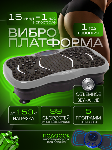 Виброплатформа Robicus для похудения, серая, с 5 программами, 99 скоростей и миостимулятором в подарок