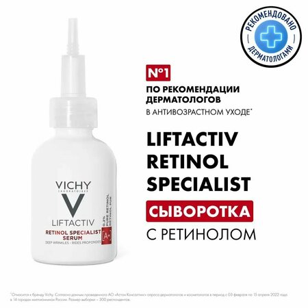 C возрастом и вследствие воздействия факторов внешней среды сокращается клеточное обновление кожи, морщины ставится более глубокими и заметными. Новая сыворотка Retinol Specialist для коррекции глубоких морщин обогащена 0,2% чистым ретинолом, усиленным фракциями пробиотика и био-пептидами для интенсивного антивозрастного действия. Борется со всеми типам морщин, даже с глубокими. Для женщин