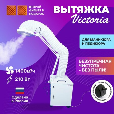 Вытяжка для педикюра и маникюра Victoria Standard, пылесос маникюрный с LED подсветкой и гофрой
