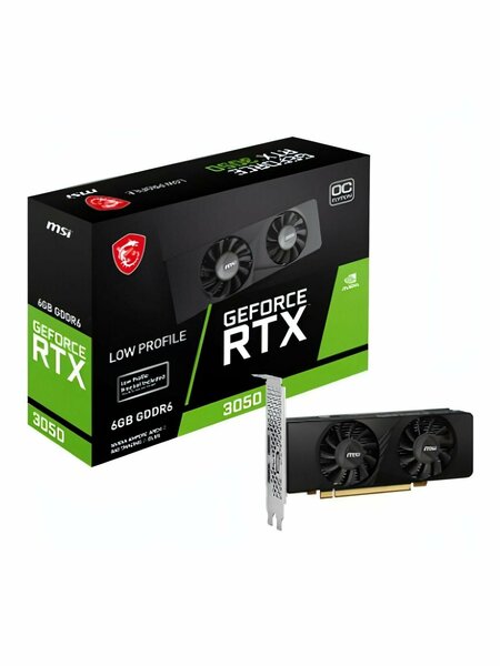 Видеокарта MSI Nvidia GeForce RTX 3050 LP 6G OC оснащена оперативной памятью частотой 14 000 МГц. • Видеопроцессор архитектуры Nvidia Ampere с тензорными ядрами ИИ и трассировкой лучей Отвечает за передачу реалистичной графики и высокую производительность даже при работе в многозадачном режиме. • Низкопрофильная конструкция (длина - 17,4 см) Можно использовать в компактных компьютерных сборках. • Поддержка Nvidia DLSS Обеспечивает быстродействие устройства. • Поддержка технологии Nvidia Reflex Быстрый отклик на команды позволяет опережать соперников. • Два вентилятора системы охлаждения Работают тихо, быстро и эффективно отводят тепло, поэтому производительность не уменьшается даже в динамичных сценах требовательных игр. Модель с шиной памяти разрядностью 96 Бит, с видеопамятью объемом 6 Гб может быть подключена к телевизору или другой видеотехнике через два HDMI-выхода. Для подсоединения монитора предусмотрен DisplayPort.