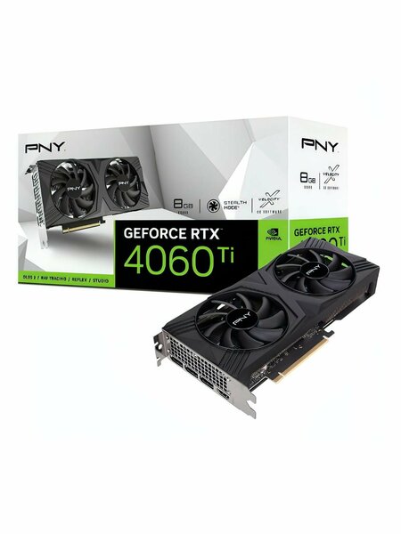 Видеокарта PNY RTX 4060 Ti 8GB Verto Dual Fan DLSS 3 (VCG4060T8DFXPB1), построенная на основе графического процессора компании Nvidia, предназначена для установки в игровой компьютер. • Активное воздушное охлаждение За отведение горячего воздуха отвечают два вентилятора. Это позволяет предотвратить перегрев, не допустить снижения производительности во время длительной работы под значительной нагрузкой. • Объем видеопамяти 8 ГБ Дает возможность хранить большой объем информации, чтобы оптимизировать работу видеокарты и улучшить качество картинки, которая отображается на дисплее. • Разъем HDMI, три интерфейса DisplayPort Можно подключить до четырех мониторов и одновременно выводить изображение на несколько экранов. Модель рекомендуется использовать с блоком питания 550 Вт. Размеры - 11,3х4х24,5 см.