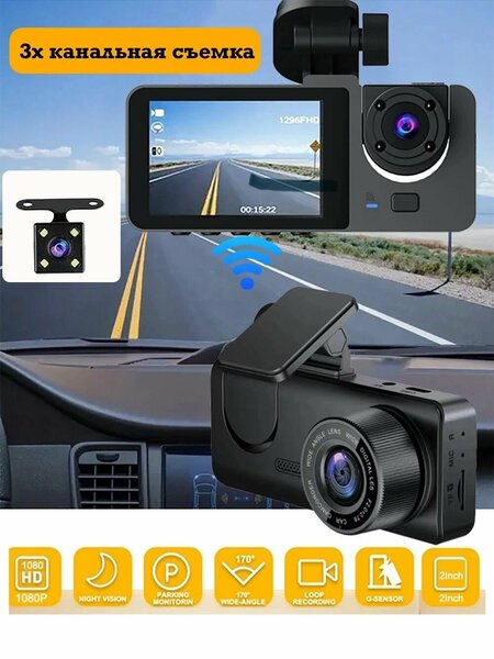 Встроенный Wi-Fi модуль, Встроенный динамик, Запись времени и даты, Запись звука, Запись по детектору движения, Камера заднего вида, салона, Ночная съемка, Поворотная камера, Подключение мобильного устройства, Режим фотосъемки