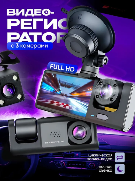 Автомобильный регистратор — это устройство, предназначенное для записи видео и аудио во время движения автомобиля. Главной целью автомобильного регистратора является фиксация опасных происшествий, таких как несчастные случаи, дорожно-транспортные происшествия, нарушения правил дорожного движения и другие ситуации. Отличное разрешение съемки, Простая установка автомобильного регистратора, хороший угол обзора, Устройство оснащено датчиком удара G-sensor, Цикличная запись видео, запись одновременно с трех камер. Наш видеорегистратор включает три камеры, что очень удобно: основной объектив снимает происходящее впереди, а камера заднего вида поможет при парковке и других случаях. Внутренняя камера позволяет записывать общение с пассажирами и сотрудниками ГИБДД. Бонусом можно будет оценить и собственную реакцию за рулём на дорожные неожиданности — например, на падающий впереди метеорит. Множество аварийных ситуаций происходит ночью. С учётом неважного освещения дорог способность видеорегистратора хорошо снимать в темноте очень важна. В критической ситуации данные не будут утеряны. Представляем вашему вниманию видеорегистратор автомобильный с экраном 3 в 1, обладающий функционалом камеры заднего вида и внутренней камеры, обеспечивающий качество записи в формате FULL HD. Этот многопрофильный прибор идеально подходит для современных автомобилей и станет незаменимым помощником на дороге. Устройство включает в себя три cámara: одна для записи видео впереди, одна для фиксации событий в салоне, и третья, встроенная камера заднего вида, что обеспечивает всесторонний контроль и безопасность. Благодаря высокому разрешению вы сможете получить четкие изображения и видео, что особенно важно в случае возникновения спорных ситуаций на дороге. Кроме того, этот регистратор оснащен дополнительными функциями, такими как радар детектор, что позволит вам избежать нежелательных штрафов и обеспечить безопасность во время поездок. Удобный экран с понятным интерфейсом позволяет быстро настраивать устройство и оперативно просматривать записи. Видеорегистратор также обладает ночным режимом, что гарантирует высокое качество изображения и в условиях плохой освещенности. Плотный корпус и качественная оптика делают его надежным выбором для любого автовладельца. Современные функции, такие как автоматическое сохранение видео при резком торможении или столкновении, позволяют уверенно рассчитывать на защиту ваших интересов в любое время. Простота установки и эксплуатации обеспечивают удобство на каждом этапе, начиная от монтажа и заканчивая повседневным использованием. Этот мультимедийный девайс станет отличным дополнением для вашего автомобиля, улучшая не только уровень безопасности, но и комфорт во время поездок. Подарите себе спокойствие на дороге с видеорегистратором, который все сделает за вас. В современном мире автомобильные видеорегистраторы становятся незаменимыми помощниками для водителей. Видеорегистраторы в машину обеспечивают надежную запись важных моментов на дороге, что особенно полезно в случае ДТП или других происшествий. Выбор авторегистратора автомобильного зависит от множества факторов, таких как качество записи и наличие дополнительных функций, например, видеорегистратор с камерой заднего вида. Современ