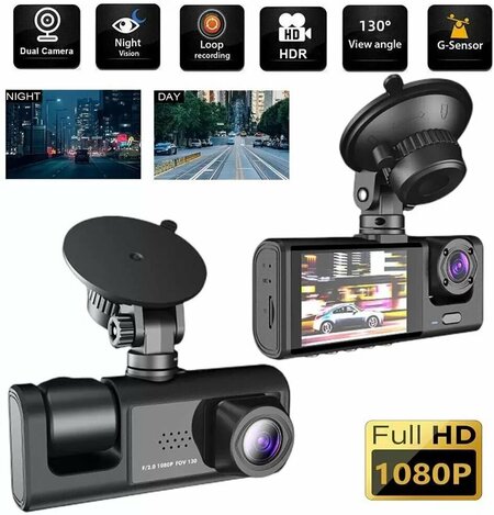 Видеорегистратор BLACK BOX T. R с 3-мя камерами /перед, зад, салон/Full HD 1080P/дисплей 2 дюйма/Объектив 170 градусов/G-сенсор/Дата/Время/Микрофон