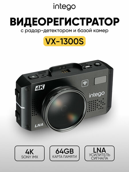 Видеорегистратор 4K Ultra HD с сигнатурным радар-детектор и усилителем LNA INTEGO VX-1300S