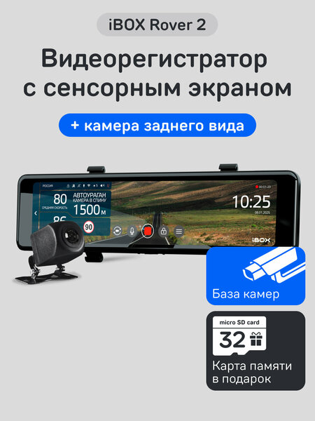 iBOX Rover 2 — автомобильный видеорегистратор-зеркало с сенсорным управлением, базой полицейских камер и Wi-Fi. Гаджет ведёт съёмку высокого разрешения Full HD за счёт светочувствительной матрицы Sony Starvis IMX307 и производительного видеопроцессора SigmaStar 8339. В условиях слабой освещённости детализацию картинки сохраняет технология Super Night Vision. Аппарат фиксируется незаметно, не мешает обзору дороги и становится для водителя технологичным зеркалом заднего вида. У авторегистратора — широкоформатный экран с интуитивным сенсорным управлением и диагональю 11.26″. А благодаря IPS-матрице дисплей читается под любым углом. Данный комплект дополнен камерой заднего вида с разрешением Full HD. Двухканальная съёмка расширяет обзорность записи, а также помогает ориентироваться при движении авто назад (функция «Ассистент парковки»). Регистратор 2 в 1 оборудован GPS-модулем и обновляемой базой полицейских радаров и камер 45 стран. Во время поездки устройство заранее сообщает водителю о средствах фотовидеофиксации. Датчик жестов позволяет отключать голосовые оповещения одним движением руки. Внимание! В зонах глушения GPS возможны сбои: показания скорости и оповещения по базе камер могут быть некорректными. Причина — не в устройстве, а в подавлении сигналов. Rover 2 сохраняет весь маршрут движения автомобиля вместе с видеозаписью. Просмотреть этот маршрут на картах можно через приложение iBOX Player. C помощью Wi-Fi и фирменного приложения iBOX Assist легко прямо из машины обновить базу камер, просмотреть или скопировать видео на смартфон. Обновление и доступ к файлам также возможны c карты памяти. Видеорегистратор iBOX поддерживает функцию Режим парковки и умеет вести видеонаблюдение во время стоянки. В случае механического воздействия на кузов запись начинается автоматически. В устройство встроен датчик удара G-сенсор — при его срабатывании регистратор сохраняет видео события в отдельную папку. А включённый датчик движения запускает съёмку при изменениях в кадре. С этими функциями гаджет умеет записывать самые непредвиденные ситуации. Для корректного завершения видеозаписи в экстренных ситуациях в Айбокс встроен суперконденсатор, способный работать в жару и холод (от -30 до + 55 °C). Расширенная гарантия — 18 месяцев. Необходимо зарегистрировать устройство на сайте iBOX в течение 30 дней с даты получения.