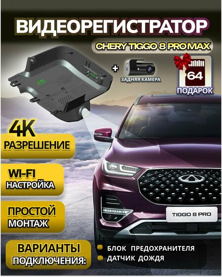 Штатный видeopeгистpатор для Chery Tiggo 8/8Pro/7Pro/7 Pro Max/8 с разрешением записи видео 4К (3840*2160). Установка за зеркалом заднего вида вместо пластика. Подключение осуществляется через датчик дождя или блок предохранителей. Сопряжение с телефоном через Wi-Fi, запись видео и фотографий происходит на карту памяти, которая идет в комплекте. Не загораживает обзор и никаких висящих проводов. Широкий угол обзора 170 градусов, циклическая запись (1 мин, 3 мин, 5 мин), запись звука, встроенный датчик удара. Двойная камера, 360° обзор 170° передняя и 140° задняя камеры обеспечивают полный обзор, минимизируя мертвые зоны и улучшая безопасность. Поддержка записи с двух камер в реальном времени и мониторинг парковки. Парковочный мониторинг Запись включается автоматически после выключения зажигания, с частотой 1 кадр в секунду, не перезаписывая важные записи. Циклическая запись Автоматическая замена старых видеофайлов, чтобы всегда была доступна свежая запись. Идеально для длительных поездок или ежедневных маршрутов. Управление через приложение Синхронизация с устройствами Android/iOS для просмотра видео в реальном времени .