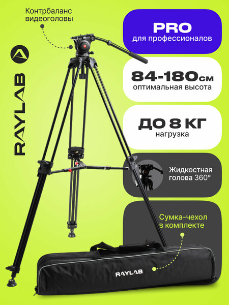Профессиональный видеоштатив для съемки видео Raylab RL-VT2518 предназначен для стабилизации изображения при видеосъёмке видеокамерами или зеркальными фотоаппаратами весом до 8 кг. Ножки штатива изготовлены из алюминиевых трубок (диаметр 18 и 14 мм), зажимы секций – из прочного ABC пластика. Высота штатива регулируется от 83,5 до 180 см. В сложенном виде длина усиленного штатива для видео составляет 80 см. Он отлично подойдёт видеографам и видеооператорам, которые работают на выезде и нуждаются в профессиональном устройстве для надежной фиксации камеры. Штатив укомплектован съёмной головой с жидкостным демпфированием и системой постоянного (неотключаемого) контрбаланса. Голова поворачивается на 360˚ по горизонтали, наклоняется вперёд и назад на углы от -70° до +90°. И для надёжности изготовлена из алюминиево-магниевого сплава. Благодаря жидкостному демпфированию все движения происходят плавно и без рывков. Штатив для камеры напольный укомплектован быстросъемной площадкой, благодаря чему . Длина рукоятки регулируется от 35 до 55 см. Диаметр чаши основания - 75 мм. Для удобства управления как правой, так и левой рукой, с двух сторон головы располагаются гнёзда для установки рукояти. Ножки штатива вилочного типа. Секции ног надежно фиксируются винтовыми замками. Для усиления штатива используется средняя телескопическая растяжка, которая не позволяет ногам разъезжаться и обеспечивает быстрое затухание колебаний. Видео штатив оборудован пузырьковым уровнем, установленным на корпусе головы для выставления камеры в горизонтальной плоскости. В комплекте поставляется прочная нейлоновая сумка для хранения и переноски. Можно использовать со всеми видами камер, например, как штатив для фотоаппарата Canon и Nikon.