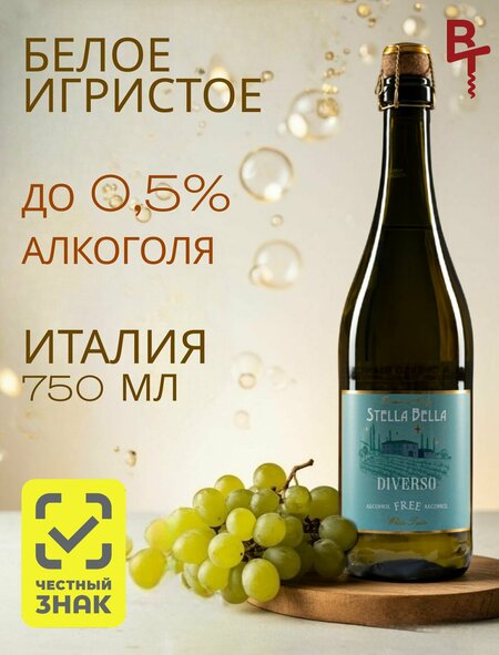 Наслаждайтесь моментом общения с близкими без лишнего беспокойства о содержании алкоголя. Игристое безалкогольное вино Стелла Белла Диверсо Бьянко – это ваш новый фаворит на любое время года, который принесет радость и удовольствие, не ограничивая ваш выбор. Позвольте себе насладиться каждым глотком безалкогольного вина и создайте незабываемую атмосферу на каждом празднике.