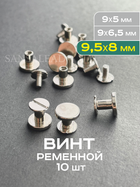 Винт ременной 9,5х8 мм, болт для ремня, винт Чикаго 8 мм, серебристые