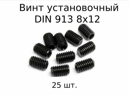 Винт установочный DIN 913 М 8x12 с внутренним шестигранником, оксидированные, черные, 25 штук