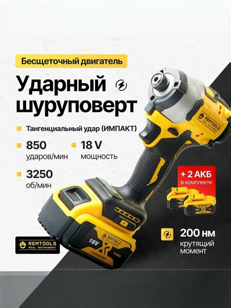 Ударный винтоверт Remtools 18V- это инструмент, который обеспечивает быстрое и эффективное затягивание винтов в твердые материалы, такие как дерево, металл и бетон. Основные преимущества нашего импульсного шуруповерта Remtools: