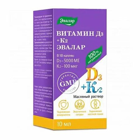 Детям с 3 х лет и взрослым принимать по 1 капле в день во время еды. При состояниях, сопровождающихся повышенной потребностью в витаминах D3 и К2 – по рекомендациям врача. Рекомендуется принимать с содержащей жир пищей. Продолжительность приема не менее - 1 месяца.