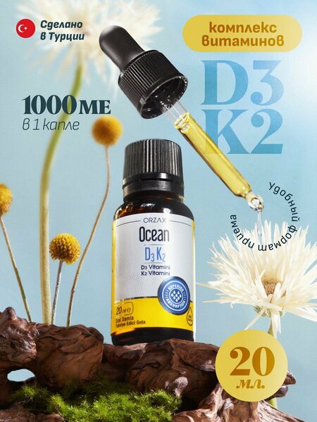 Комплекс витаминов для взрослых и детей. Жидкое средство для волос, кожи. За качество товара отвечает Турция. Витамины д3 и к2 помогают усвоению кальция, улучшению иммунной защиты, укрепляет суставы, зубы и кости. Курс каплей 5000 ме используют как средство для омоложения, антистресс и антивозрастные бады. Витамины d3 и k2 также убирают излишки кальция организма и не допускают образования кальциевых солей, защищают от онкологии, так как контролируют процесс деления клеток и помогает бороться с различными болезнями, например, болезнью Паркинсона. Достаток витамина д2 в организме улучшает артериальное давление, контролирует работу щитовидной железы и нормализует процесс деления клеток. Детские капли помогут вашему ребенку укрепить кости и зубы, а также нормализует рост и развитие. Блеск волос и ваше здоровье в надежном турецком аква средстве.