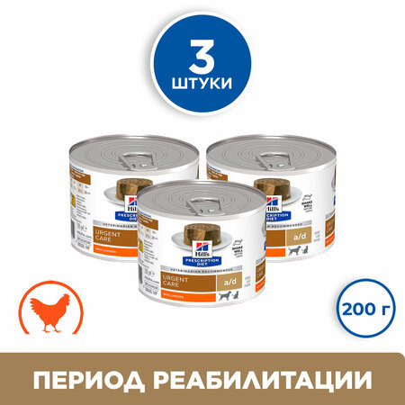 При восстановлении после серьезного заболевания, травмы или хирургического вмешательства в организме кошки и собаки могут происходить значительные изменения метаболизма. В стрессовых условиях вашему питомцу приходится больше поддерживать свои природные защитные силы, что делает еще более важным кормление специально сбалансированным рационом, чтобы помочь вашему питомцу оправиться после тяжелого состояния. Диетический влажный корм (консервы) Hill's Prescription Diet a/d Recovery - питание, разработанное диетологами и ветеринарными специалистами Hill's для собак и кошек, для восстановления после серьезного заболевания, травмы или хирургического вмешательства, поэтому вы можете быть уверены, что делаете все возможное для своего питомца в трудную минуту. ● Высококалорийный диетический корм для обеспечения энергией, необходимой в период реабилитации. ● Великолепный вкус, стимулирующий аппетит у питомца. ● Максимальная гибкость режима кормления и дозирования: например, с помощью миски, ложки, шприца и зонда, для обеспечения необходимыми питательными веществами тяжелобольных пациентов. ● Поддерживает здоровье иммунной системы и естественную способность питомца к заживлению и восстановлению. Влажный корм для собак и кошек Hill's Prescription Diet a/d предназначен для диеты Recovery и только для временного или в качестве дополнительного кормления. Не рекомендуется для длительного применения (более 6 месяцев). Пожалуйста, проконсультируйтесь с ветеринарным специалистом для получения дополнительной информации о том, как корма Hill's Prescription Diet могут помочь вашему питомцу вести счастливую и активную жизнь.