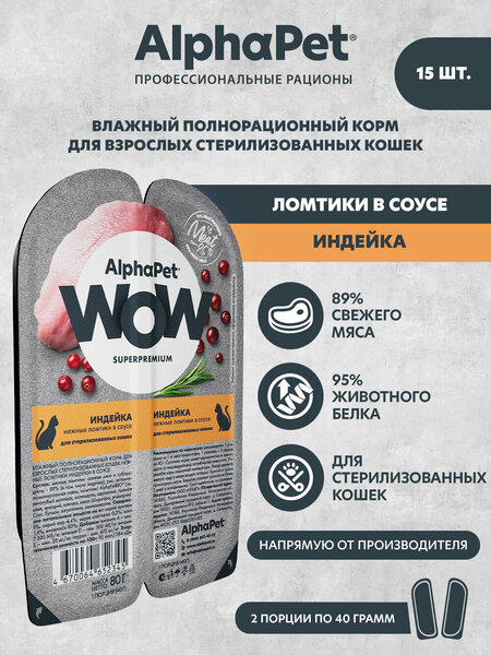 Здоровый и активный питомец – главная задача каждого хозяина. Команда AlphaPet создает и производит полезные корма высшей категории качества Holistiс, давая возможность каждому владельцу быть уверенным в правильном выборе кормления для своего животного. AlphaPet WOW - линейка качественного питания по доступной цене для животных, владельцы которых хотят быть уверены в выборе лучшего качества рациона по разумной цене. Максимально открытый и понятный состав кормов, приготовленных по инновационной технологии из свежего мяса и с содержанием более чем 90% мясного белка! Влажные корма AlphaPet это: bнгредиенты качества Human GraidУникальный комплекс AlphaPetBio Рис - для чувствительного пищеварения*Не содержит ГМО искусственных красителей, ароматизаторов, консервантов, пшеницу, кукурузу и глютен.