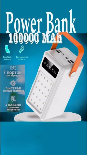 Популярная модель Solar Charger 100000 mAч. Внешний аккумулятор обладает повышенной ёмкостью АКБ 100000 мАч и обеспечит до 20 полных зарядок современного смартфона. Повербанк обеспечит возможность резервной подзарядки, когда нет доступа к электрическим розеткам 220В. Имеется индикация заряда, фонарик. Не нужно теперь носить с собой кучу кабелей и разъемов наш пауэрбанк Solar Power универсален и практичен. Индикация заряда, фонарик, встроенные кабели станут незаменимыми помощниками как в повседневной жизни, так и в путешествии, на рыбалке или просто на отдыхе. Предназначен повербанк для телефона iphone android, а так же для смарт часов, планшета, зарядит наушники, беспроводные зарядки и многое другое. Совместим с iPhone 6, iPhone 6S iPhone 7, iPhone 8, iPhone X, iPhone Xr, iPhone Xs, iPhone Xs max, iPad, iPhone 11, IPhone 11 pro max, IPhone 12, iPhone 12 pro, IPhone 12 pro max, IPhone 13, IPhone 13 pro, IPhone 13 pro max , iphone 14. Дисплей с цифровой шкалой уровня заряда показывает состояние заряда аккумулятора в процентах. Имеет основные уровни защиты: защита от перепадов и скачков напряжения, от перезаряда, от перегрева, от полной разрядки.