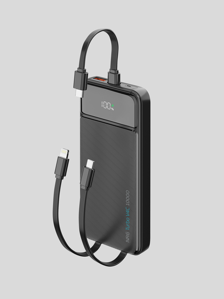 Внешний аккумулятор NRG Turbo V4 10000 мАч с быстрой зарядкой 22.5 Вт идеально подходит для повседневной эксплуатации за счет своей портативности. Зарядите смартфон до четырех раз, планшет – до двух раз, умные часы – до двадцати пяти раз. Современная защита от скачков напряжения и перегрузки обезопасит ваши устройства. Кроме того, Deppa NRG Turbo поддерживает протоколы быстрой зарядки Power Delivery и Quick Charge и оснащен актуальными разъемами для подключения устройств – USB-A и Type-C. Яркий LCD-дисплей позволит оперативно оценить оставшийся запас энергии и вовремя его восполнить. Суммарная мощность Выход: 22,5Вт. Вход: 18Вт Входной разъем: USB-C1 5В/2,4А, 9В/2А, 12В/1,5А Выходной разъем: USB-C1 5В/3А, 9В/2,22А, 12В/1,67А Выходной кабель USB-C2: 5В/3А, 9В/2А, 10В/2,25А, 12В/1,67А Выходной кабель Lightning: 5В/2,4А Выходные разъемы USB-A: 5В/3А