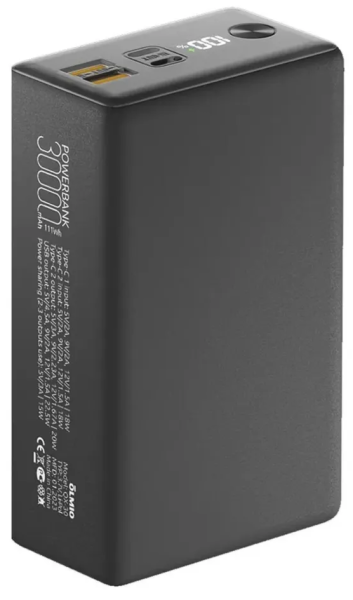 Внешний аккумулятор Olmio QX-30 поддерживает быструю зарядку Quick Charge 3.0 на вход и выход. Таким образом модель быстро заряжает и быстро заряжается. А благодаря технологии Power Delivery пауэрбанк QX-30 может передавать через разъем Type-C ток с максимальной выходной мощностью 20.5 Ватт, что соответствует требованиям мощных современных смартфонов и даже некоторых ноутбуков. При производстве портативного аккумулятора QX-30 используются литий-полимерные элементы питания, поэтому при большой емкости повер банк весит всего 605 грамм и имеет только 26 миллиметра толщины. Устройство удобно держать в руке вместе со смартфоном или положить в карман, пока идет зарядка Вашего гаджета. Корпус модели получил текстурированное, приятное на ощупь soft-touch покрытие, поэтому повербанк так комфортно ложится в ладонь. Модель имеет цифровой дисплей, на котором в процентах отображается остаток заряда. Внешний аккумулятор Olmio QX-30 заряжаться кабелем Type-C . Это наиболее популярный вариант разъема в современных смартфонах, поэтому Вы можете заряжать power bank и телефон одним кабелем. У модели четыре выходных разъема, поэтому один пауэрбанк может заряжать четыре гаджета сразу.