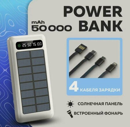 Внешний аккумулятор Powerbank: мощный и функциональный Powerbank - это незаменимый помощник для тех, кто проводит много времени в дороге или на отдыхе. С его помощью вы сможете зарядить свой смартфон, планшет или плеер в любом месте и в любое время. Емкость аккумулятора составляет 50000mAh, что обеспечивает продолжительное время работы ваших устройств. Вам больше не придется беспокоиться о том, что ваш гаджет разрядится в самый неподходящий момент. Powerbank оснащен фонариком, который пригодится вам в темное время суток или в случае непредвиденных ситуаций. Вы сможете осветить себе путь или подать сигнал. Благодаря компактным размерам и легкому весу, вы сможете взять Powerbank с собой в путешествие, на работу или на прогулку. Выбирая Powerbank, вы получаете не только надежный и мощный аккумулятор, но и удобный и функциональный аксессуар, который станет незаменимым помощником в вашей повседневной жизни.