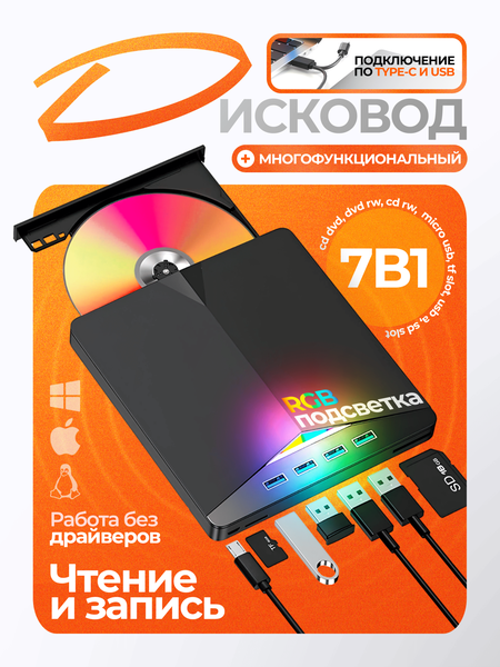 Внешний дисковод – компактное и универсальное решение для чтения и записи CD/DVD. Дисковод для ноутбука внешний легко подключается через USB (2.0/3.0) или Type-C, не требует дополнительного питания. Внешний дисковод для компьютера совместим со всеми операционными системами, поддерживает все популярные форматы дисков. DVD привод внешний обеспечивает высокую скорость чтения (до 24x для CD, 8x для DVD) и записи (DVD±R, DVD±RW, CD-RW). Внешний CD/DVD-привод идеален для просмотра фильмов, установки программ или резервного копирования. Дисковод для компьютера внешний заменяет картридер, избавляя от необходимости носить дополнительные устройства. Внешний дисковод для ноутбука удобен в путешествиях благодаря малому весу и стильному дизайну. Выбирайте внешний DVD привод – простое и надежное решение для работы с дисками и картами памяти!