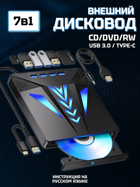 Внешний оптический привод – универсальное решение для чтения и записи дисков Компактный и надёжный внешний дисковод позволяет легко считывать и записывать CD и DVD-диски. Идеально подходит для ноутбуков без встроенного дисковода, а также для настольных ПК, где требуется дополнительный привод. Внешний дисковод для ноутбука поддерживает чтение и запись. Отлично подходит для установки программ с дисков, воспроизведения фильмов и музыки, а также для создания резервных копий данных. Основные характеристики: Поддержка форматов: CD, CD-R, CD-RW, DVD±R, DVD±RW, DVD+R DL, DVD-ROM, DVD Video, Audio CD Скорость записи: CD-R до 24x, CD-RW до 10x, DVD±R до 8x, DVD±RW до 6x, DVD+R DL до 6x Скорость чтения: CD до 24x, DVD до 8x Интерфейс подключения: USB 3.0, Type-C Совместимость: Windows XP / 7 / 8 / 10 / 11, macOS, Linux Поддержка установки программ с лицензионных дисков (например, Canon, HP и других) Питание через USB 3.0 и USB Type-C (может потребоваться дополнительное питание при слабом порте) Комплектация: внешний дисковод, USB шнур, Type-C шнур, дополнительный шнур (если не хватает питания), инструкция на русском языке, упаковка. DVD привод не требует установки драйверов — подключается по принципу Plug & Play. Работает стабильно, компактный и лёгкий — удобно брать с собой в дорогу. Если вам нужен доступ к данным с дисков или установка программного обеспечения с CD/DVD — этот внешний дисковод для компьютера станет надёжным помощником в работе и дома.