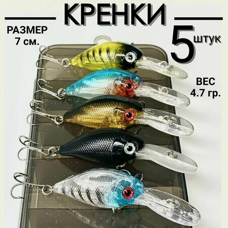 Воблер для рыбалки на щуку 5 шт, кренк 7 см 4.7 грамм, приманки рыболовные на судака и окуня, снасти для спиннинга в коробочке