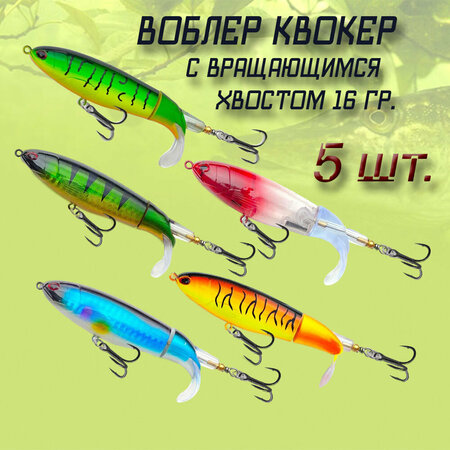 Воблеры набор 5шт. квокер с вращающимся хвостом 10 см. 16гр. плавающая приманка