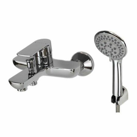 VODA. Смеситель для ванны и душа с коротким изливом, с аксессуарами, душевая лейка и шланг, хром, гарантия 7 лет