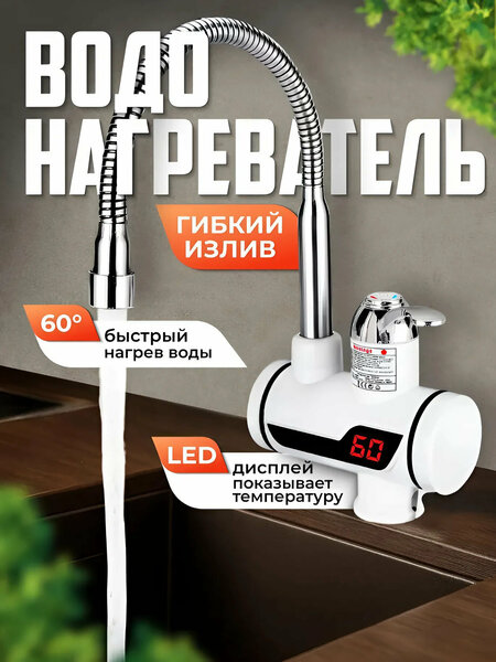 Электрический кран с гибким гусаком предназначен для быстрого нагрева проточной холодной воды в помещениях без возможности установки накопительного водонагревателя. Гибкий смеситель поворачивается на 360 градусов для удобства использования. LED дисплей обеспечивает удобное управление температурой. Электрокран из качественного термостойкого пластика обеспечивает надежную защиту. 360-градусный вращающийся нагреватель позволяет выбрать оптимальное место для установки. Кран активирует нагрев только при наличии воды, обеспечивая безопасное использование. Моментально получайте горячую воду на кухне или в ванной комнате. С автоматическим отключением для экономии электроэнергии, этот электрический кран идеально подходит для любого интерьера. Бесшумная работа и возможность нагревать воду до 60°C в считанные секунды делают этот кран отличным приобретением для дома, дачи или сада. Подарите этот стильный и удобный электронагреватель близким на любой праздник.