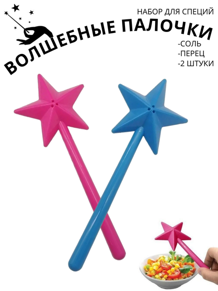 Набор для специй в виде волшебных палочек создаст самый настоящий праздник на кухне! С этими палочками вы почувствуете себя волшебником, который творит чудеса. Волшебные палочки "Соль и перец" станут отличным дополнением к вашей кухне. Они не только облегчат процесс приготовления пищи, но и украсят вашу кухню, добавив в нее немного магии и волшебства. Эти палочки стильно впишутся в сервировку стола, а детям будет особенно интересно принимать участие в приготовлении блюд, они будут просто в восторге! Каждая хозяйка оценит этот необычный формат солонки и перечницы, а гости точно отметят вашу креативность! Набор удобно брать с собой на природу и на дачу, любой выезд на шашлык теперь не останется без соли и перца, которые всегда забываются. Также этот набор подойдет для ресторана и кафе, их удобно ставить в стаканчик или подставку. Впустите немного волшебства в ваши будни с нашим магическим набором и каждый день будет приправлен чуточкой магии! Волшебные палочки "Соль и перец" - это не просто кухонные аксессуары, это настоящие помощники в создании кулинарных шедевров. Они превращают процесс приготовления пищи в настоящее волшебство, делая его более удобным и приятным. Палочки изготовлены из высококачественных материалов, что гарантирует их долговечность и надежность в использовании. Вы можете быть уверены, что они прослужат вам долгое время, сохраняя свой вид и функциональность. Набор идеально подойдет для соли и перца, а также других специй мелкого помола. Палочки легко заправлять, для этого нужно открутить палочку, насыпать специи и прикрутить палочку. Палочка готова к использованию. Комплект из двух цветов - розовый и синий.