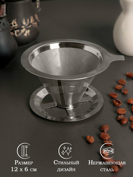 Достоинства:Нержавейка, за два использования показала себя достойно, претензий нет. Можно мыть в ПММ. Недостатки:Какую-то ручку/держатель/прихватку нужно применять, если убирать воронку сразу после пролива гор. водой - ручка у воронки короткая и становится оч. горячей, но, конечно, это мелочь, а не проблема. Комментарий:Можно насыпать молотый кофе в воронку и проливать гор. водой или заварить кофе в отдельной ёмкости и использовать воронку в качестве фильтра - делаю и так и так.