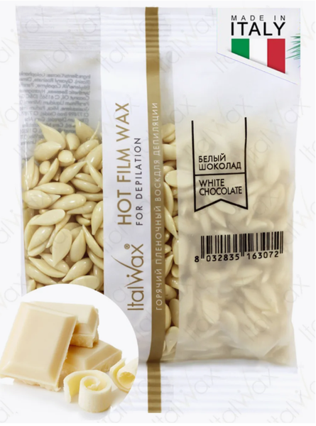 Воск для депиляции Italwax Белый шоколад 100 гр. Воск для депиляции Italwax Белый шоколад изготовлен на основе натуральной сосновой смолы и обладает уникальными свойствами, обеспечивающими повышенную адгезивность и высокую пластичность. Низкая температура плавления +42 градуса и введение в состав полимерных компонентов делают его безопасным для чувствительной кожи. Под теплой восковой аппликацией кожа распаривается, поры раскрываются, волоски становятся мягкими и послушными, что облегчает их удаление. После процедуры кожа гладкая, без раздражений и покраснения. Воск наносится шпателем тонким слоем, без учета направления роста волос. Время застывания аппликации составляет 6-7 секунд. Пленочные воски ITALWAX – это улучшенный вариант горячего воска. Работают при + 42°С, что исключает возможность ожога. Воски четко повторяют контуры тела, обеспечивая депиляцию труднодоступных зон с первого раза. Воск пленочный Italwax Белый шоколад 100 гр. не содержит продуктов животного происхождения и обладает особыми адгезивными свойствами. Продукт не содержит ингредиентов, вызывающих аллергию, и обеспечивает 100%-ное сцепление с волосками. Содержит комплекс натуральных масел, который создает максимальную защиту и особенный комфорт во время процедуры. Подробная комплектация включает воск пленочный Italwax Белый шоколад 100 гр, шпатель для нанесения воска и инструкцию по применению.