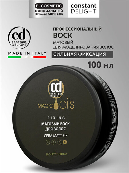 Профессиональный матовый воск сильной фиксации CONSTANT DELIGHT MAGIC 5 OILS создан для четкого моделирования причёски. Его плотная текстура обеспечивает устойчивую укладку без утяжеления, позволяет создавать стильные формы с точной фиксацией. Подходит для коротких и средней длины волос, независимо от их густоты и текстуры. Фиксатор идеально подчёркивает форму стрижки, усиливая объём у корней и подчёркивая линии. В составе натуральные воски, обеспечивающие эластичность и комфортное нанесение. Комплекс ухаживающих компонентов помогает избежать сухости и жёсткости после использования. Текстурайзер легко распределяется, не образует комков и не оставляет следов. Стайлинг подходит мужчинам и женщинам, стремящимся к аккуратной укладке с матовым финишем, где важно убрать пушистость. E-COSMETIC – официальный поставщик CONSTANT DELIGHT.