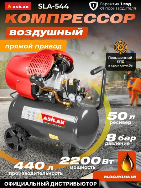 Воздушный компрессор масляный ASILAK SLA-544 — это надёжный и эффективный инструмент, который обеспечивает высокое давление воздуха для различных задач. Преимущества: