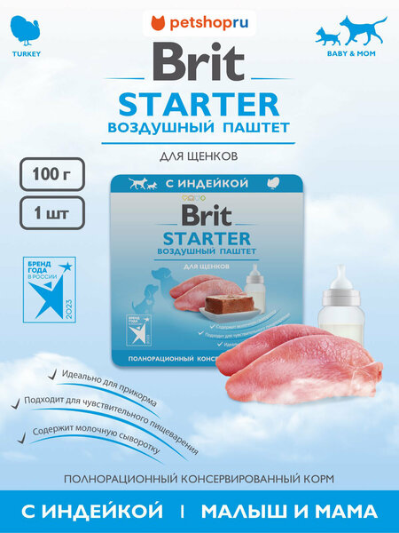 Брит Воздушный паштет с индейкой для щенков, STARTER, 100 грамм