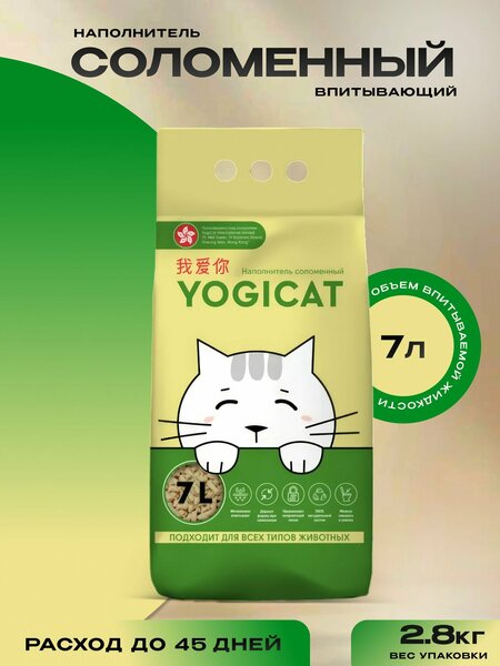 Впитывающий растительный наполнитель YogiCat для кошачьего туалета - это натуральный 100% экологически чистый природный наполнитель из злаковых культур. Кошачий наполнитель для лотков Йогикэт 2,8 кг (7 литров) состоит из натуральных растительных пеллет диаметром 6 мм соломенного цвета. Пеллеты для наполнителя произведены из соломы злаковых культур, гранулы имеют стандартный размер, поэтому очень комфортны и не прилипают к лапкам и шерсти животного, ваша кошка не разнесет его по дому. Растительные волокна быстро впитывают влагу и эффективно нейтрализуют неприятные запахи. Соломенный наполнитель не создает пыль и позаботится об органах дыхания вас и вашего кота. Впитывающий наполнитель YogiCat абсолютно безвреден для вас и питомца, не вызывает аллергию. Не содержит искусственные и химические ингредиенты, ароматизаторы и красители, клей и добавки. Йогикет это высокая эффективность и экономичность. Пыли нет! Соломенные волокна, не создают пыль. Откажитесь от вредных добавок и ароматизаторов, сделайте повседневное использование наполнителя безопасным для питомца и себя. Наполнитель растительный отлично подходит в качестве подстилки для кроликов, морских свинок, хомяков, крыс, шиншилл и других грызунов, а также для мульчирования почвы. Это идеальная альтернатива силикагелевым и бентонитовым наполнителям. Впитывающий соломенный наполнитель YogiCat очень прост в использовании. Равномерно насыпьте растительный наполнитель в чистый и сухой лоток слоем около 3-4 см и убирайте ежедневно по мере появления твердые экскременты. По мере необходимости один раз в 5-7 дней замените наполнитель на новый. Почему именно соломенный наполнитель Йогикэт для котят, котов, кошек и грызунов: · Хорошо впитывает влагу (лапки питомца будут сухими). · Нейтрализует неприятные запахи. · Не пылит. · Не прилипает к лапкам и шерсти питомца. · Не содержит ароматизаторы. · Гипоаллергенный и безопасный для вас и животного (натуральный экологически чистый природный продукт). · Можно смывать в унитаз небольшими порциями - биоразлагаемый. · Экономичный в использовании.
