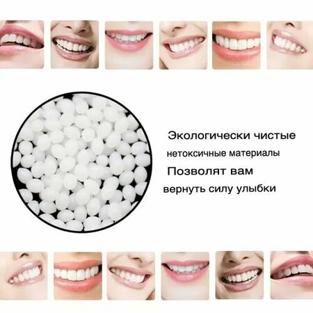 Набор стоматологических материалов для срочного ремонта естественных и искусственных зубов. Комплект для ремонта естественных и искусственных зубов. Термоформованные бусины из стоматологического материала, отличный вариант для временной пломбы и даже полноценной замены целого зуба. Данная пломба избавит вас от мучительных болей, при приеме пищи или скроет деффекты отсутствия зубов. Отличная срочная "скорая помощь", если вдруг очень большая очередь на прием к стоматологу. Временная пломба - это простота в использовании и совсем низкая цена. Применение: 1. Приготовьте стаканчик кипятка и положите в него около 15 штук (бусинок), 2. Дождитесь когда бусинки станут прозрачными и превратятся в гель, 3. Вытащите полученную гель в чашку и немного охладите, 4. Затем поместите полученную массу в отверстие зуба, или сделать имитацию зуба, 5. Вытащите полученную форму и охладите, пока она не станет белой, 6. Запрещается во время пользования имплантом употреблять горячие напитки.