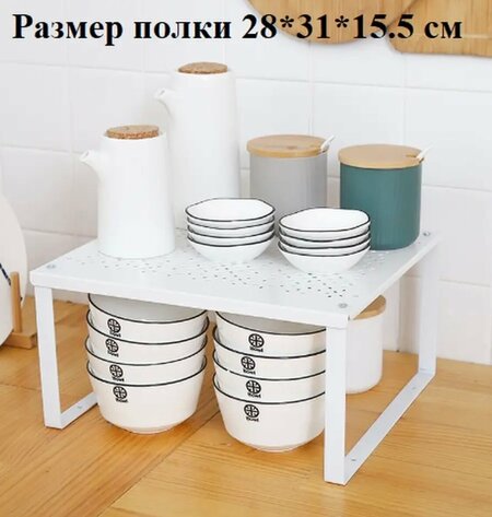 Вставка в полку - удобная и надежная конструкция для размещения и хранения предметов, организации пространства. Универсальная интерьерная полка на ножках для кухни и ванной идеальное решение для оптимизации пространства. Кухонный органайзер белого цвета поможет навести порядок в любом кухонном шкафчике или на столе. Держатель для кухни изготовлен из металла. Многофункциональная универсальная полка подойдет для хранения тарелок, чашек и кружек, специй, емкостей для сыпучих продуктов и остальной кухонной утвари. Металлическая полка белая станет отличным органайзером для кухонных принадлежностей, держателем для посуды, полкой для сушилки. Металическая вставка в шкаф, тумбу поможет сэкономить место на кухне. Полка для посуды крепкая и выдержит стопку тарелок, плошек, чашек и многое другое. Подставка разделитель сэкономит место в ванной комнате, в тумбочке. Подойдет как полка для шампуней и хранения баночек с кремами, подставка для косметики, полотенец и туалетной бумаги, а также как подставка органайзер под раковину. Можно использовать как подставку для обуви, полку или стойку для цветов. Этажерку металлическую можно использовать на письменном столе, на полке шкафчика, как подставка для книг и учебников, подставка для канцелярии и письменных принадлежностей. Отличный подарок в дом любой женщине и домохозяйке, маме, бабушке, сестре или коллеге по работе на любой праздник будь то новоселье или 8 марта или 23 февраля или подарок без повода.