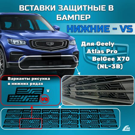 Вставки защитные в нижнюю решетку переднего бампера Geely Atlas Pro (Azkarra, NL-3B) 2021-, Belgee X70. Волна с решеткой, черные. Подходят для Атласа Про как с радором круиз-контроля, так и без него. Предназначены для защиты радиатора от мусора и камней. В отличие от внешних защитных сеток данные вставки не портят внешнего вида автомобиля, но наоборот украшают его. Применяются вместо защитных сеток решетки радиатора Джили Атлас Про (Azkarra). Вставки изготовлены на 3D-Принтере из пластика, обладающего высокой прочностью и морозостойкостью, не боятся ультрафиолетовых солнечных лучей и зимних дорожных реагентов. Устанавливаются очень быстро и легко, без применения каких-либо инструментов, дополнительных крепежей и без снятия бампера, держатся очень крепко. Комплект из 24 вставок. Упаковка - 0.3кг, 18х9х7см.