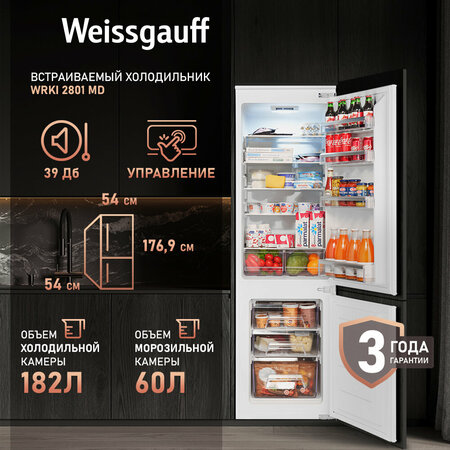 Современный встраиваемый холодильник от Weissgauff с объемом 242 литров, капельной системой размораживания, оснащенный полностью электронным модулем управления и LED-освещением - это технологичная и функциональная модель, выполненная со всей тщательностью немецкого подхода к созданию качественной бытовой техники. Габариты устройства 54 х 54 х 176,9 см - это оптимальные параметры, при выборе которых инженеры Weissgauff руководствовались целью создать для вас максимально вместительный и функциональный холодильник, который при этом окажется удобен в установке и не будет занимать лишнее место на вашей кухне! Объем холодильной камеры 182 литра - дает вам полную уверенность в том, что вы легко сможете разместить в холодильнике сразу все необходимые продукты. А особая эргономика внутренних полок позволит вам оптимизировать внутреннее пространство камеры в случае необходимости! Объем морозильной камеры 60 литра обеспечит гарантию того, что данная модель предоставит вам достаточно места для заморозки и длительного хранения продуктов! Капельная система размораживания - это современное и технологичное решение, позволяющее сохранить естественный вкус, запах, внешний вид и свежесть продуктов, не подвергая их высушиванию через принудительную циркуляцию воздуха. Охлаждение при этом производится испарителем, который находится за пределами рабочих камер устройства, что обеспечивает сохранение естественной влажности внутри, одновременно с этим препятствуя образованию наледи на стенках устройства. Мощность замораживания до 2,5 кг/сутки это поистине впечатляющий показатель, позволяющий вам с легкостью разместить в морозильную камеру сразу большой объем свежих продуктов! Столь высокий показатель обусловлен стремлением Weissgauff создавать по-настоящему эффективные устройства, в качестве которых вы действительно можете быть уверены! Автономное сохранение холода до 20 часов даст дополнительный уровень защиты для ваших продуктов, например, в случае внезапного отключения электроэнергии! Класс энергопотребления А+ позволит вам еще раз убедиться в том, что Weissgauff способны создавать по-настоящему эффективные устройства, не расходующие при этом больше электричества, чем необходимо! Расход электроэнергии 260 кВт/год - это прямое подтверждение того, что Weissgauff предлагает Вам устройство, обладающее не только высокой производительностью и великолепным дизайном, но и способное помочь вам ощутить существенную выгоду при оплате счетов за электроэнергию! Слайдерное крепление фасада реализовано благодаря удобным направляющим, размещенным на двери холодильника, что позволяет автоматически плавно смещать внешний элемент фасада при каждом открытии дверцы! Перенавешиваемые двери позволят вам самостоятельно выбрать, в какую сторону будет осуществляться открывание холодильника, что особенно важно при планировании его размещения на кухне! Электронное управление позволит вам буквально в несколько прикосновений настроить параметры холодильника согласно вашим пожеланиям, что сделает работу с данной моделью еще более удобной и комфортной! LED-освещение, автоматически активирующееся при открывании дверцы холодильной камеры, наполнит ваш холодильник мягким и кристально чистым светом, позволяющим легко увидеть все расположенные в нем продукты! Полки, выполн