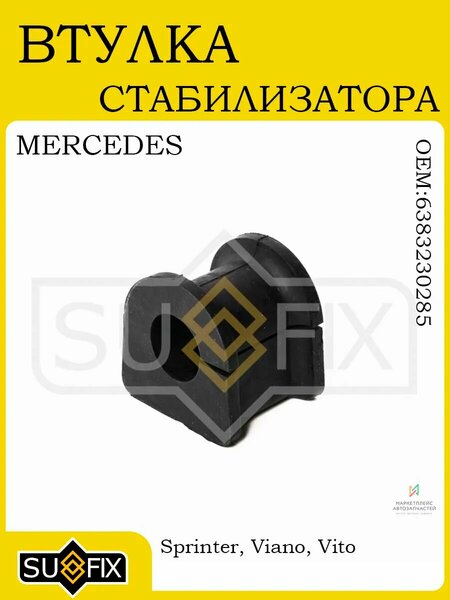 Втулка стабилизатора для MERCEDES Sprinter, Viano, Vito (96) от бренда SUFIX (артикул SK-2566) — это качественный и надёжный компонент подвески. Она обеспечивает устойчивость автомобиля на дороге и комфорт во время движения. Весит всего 0,089 кг. Размеры упаковки: высота — 5 см, ширина — 6 см, глубина — 5 см. Страна производства — Китай. Втулка подходит для следующих моделей: * MERCEDES-BENZ Sprinter с двигателем 2.2D-3.5 после 2006 года выпуска; * Viano (W639) с двигателями 2.0D-3.0D после 2003 года выпуска; * Vito (W638 / W639) с двигателями 2.0-2.8 после 1996 года выпуска. Оригинальные номера: 6383230285.