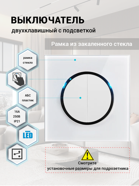 Внимание! НЕ подходит для установки В стандартный стакан (подрозетник) Купить подрозетник для данной модели можно в нашем каталоге по арт. 4236590718 Выключатель проходной (переключатель) круглый с самовозвратом и подсветкой (С фиксацией) можно использовать как обычный выключатель. Для это достаточно не подключать один из контактов. Выключатель с рамкой из закаленного стекла, цвет черный, белый, серый. Изысканный дизайн: Идеальные пропорции и гармоничное сочетание функциональности, эстетики и эргономики – ключевые принципы, определяющие успех серии электроустановочных изделий Sapphire. -Идеально выверенные пропорции. -Оригинальная форма. -Роскошная глянцевая рамка из стекла. -Приятные тактильные ощущения. Оптимальный баланс цены и качества: Работая над созданием серии Sapphire, мы детально прорабатывали каждый конструктивный элемент в поисках лучших решений по разумной цене. Итогом этой работы стали дизайнерские электроустановочные изделия, которые доступны каждой семье и могут гармонично дополнить любой интерьер. -Европейский уровень качества. -Повышенная надежность изделий. -Удобство сборки и монтажа. -Можно использовать как проходной выключатель. Надежность и безопасность: Надежность электроустановочных изделий серии Sapphire стала для нас основным приоритетом. Мы используем конструктивные элементы, которые позволят использовать наши изделия многие годы. Корпуса и рамки серии Sapphire изготовлены из негорючего пластика, что значительно повышает уровень пожарной безопасности помещений. -Повышенная прочность изделий. -Качественная сборка. -Огнестойкий пластик. Технические характеристики -Материал панели: закаленное стекло -Повышенная прочность изделий. -Качественная сборка. -Огнестойкий пластик. -Номинальное напряжение: 110-250 В -Номинальный ток: 16 А -Расстояние между монтажными отверстиями: 60 мм -Размер: 86 мм * 86 мм* 35 мм. -Крепление: Винтовое (Механизм без распорных лапок). -Установочные коробки (подрозетники) не входят в комплект поставки.