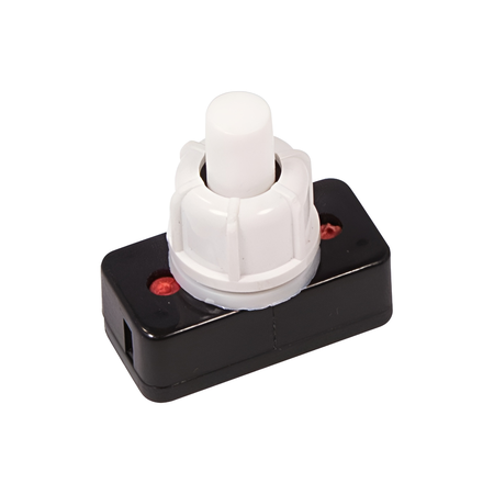 Выключатель-кнопка ON-OFF Rexant, белый (для настольной лампы) используется для коммутации электрических цепей переменного тока напряжением до 250В, а именно для управления освещением, путем включения-выключения питающего провода. Модель имеет пружинный возвратный механизм и состоит из лицевой части (головки) и контактной части. Монтаж производится с помощью винтовых зажимов. Технические характеристики: Номинальное напряжение: 250В; Номинальный ток: 1A (250VAC); Тип переключения: ON-OFF; Модель с фиксацией, имеет 2 положения: базовое положение 1 замкнута, 2 положение разомкнута. Количество контактных групп: 1; Количество контактов в контактной группе: 2; Фиксация положений: есть; Индикатор коммутационных положений: отсутсвует; Установочный диаметр: 10мм; Рабочая температура: от -25℃ до +85℃; Ресурс: 10 000 циклов
