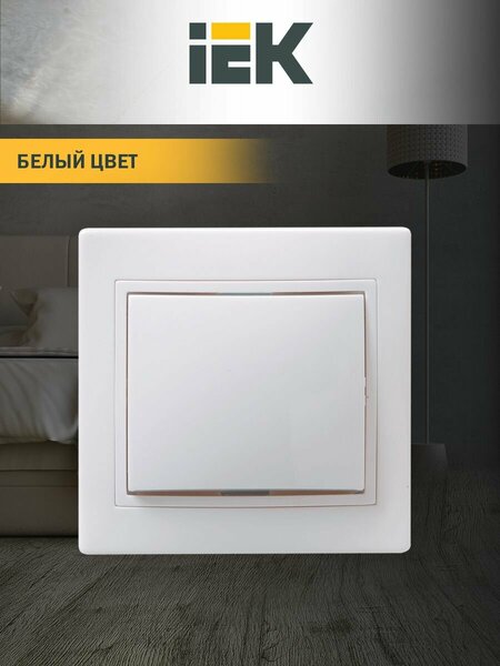 Выключатель одноклавишный ВС10-1-0-КБ 10А белый IEK серия Кварта